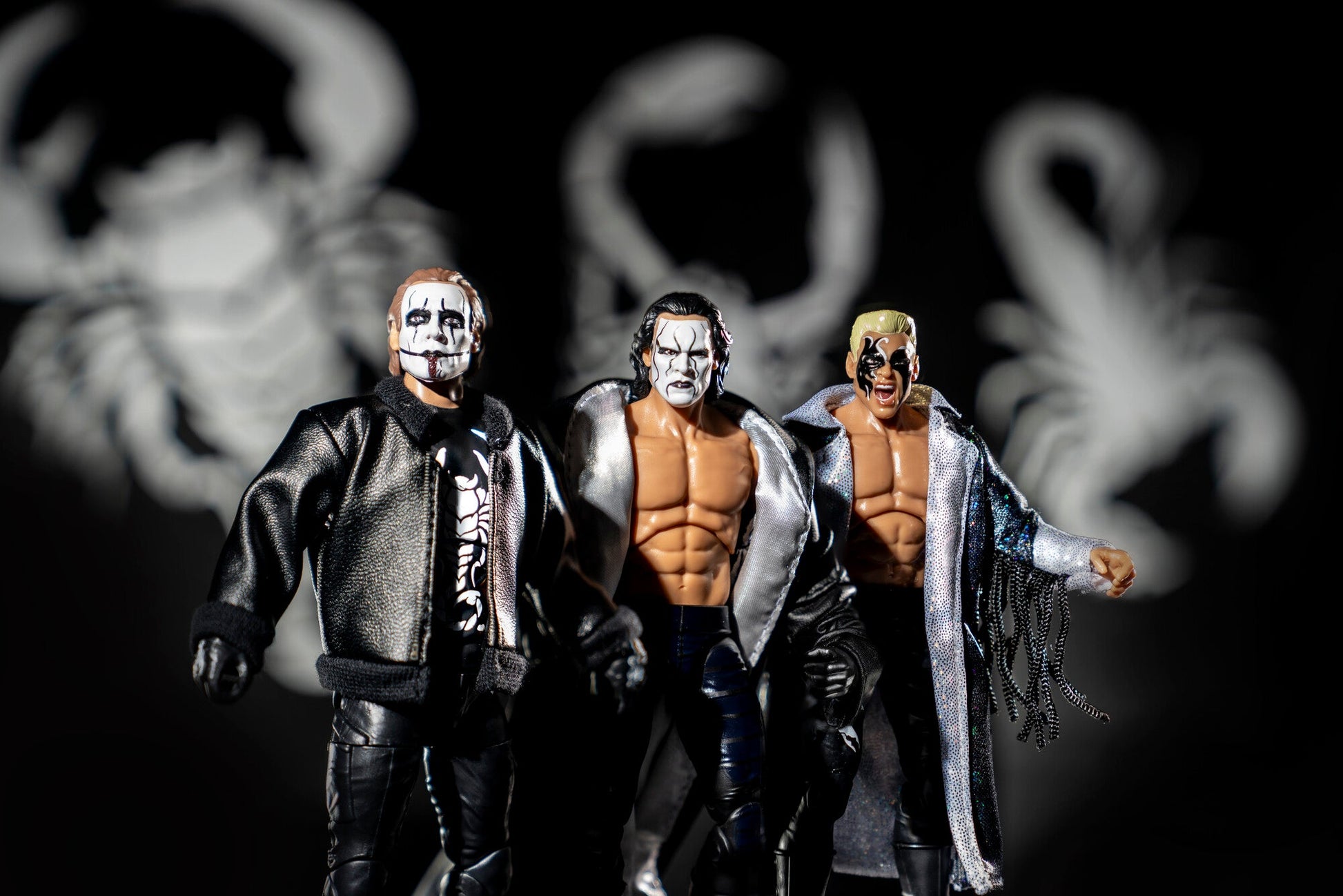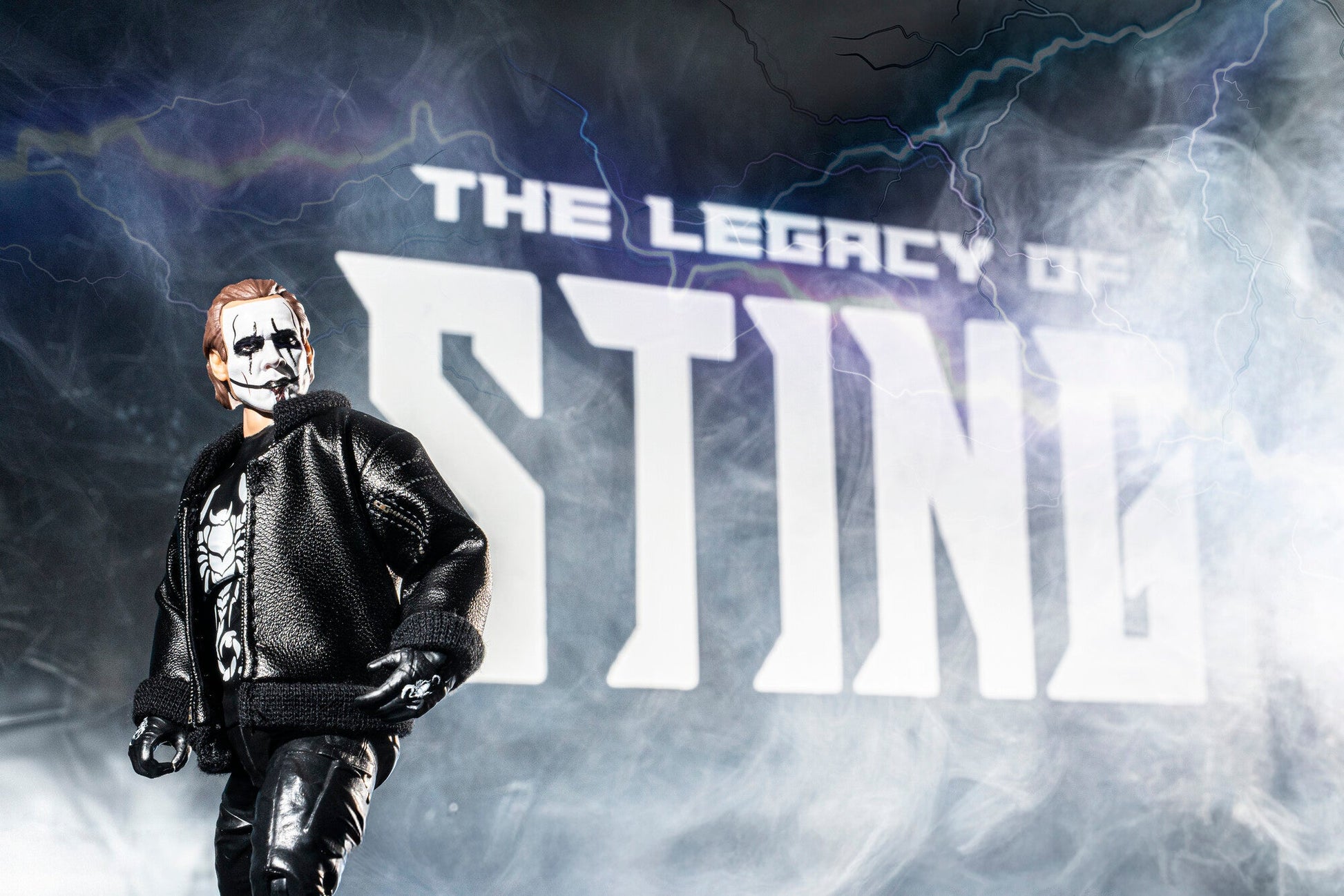 This deluxe set includes three 6-inch figures of Sting as he appeared in the most iconic eras of his career. First is Superstar Sting, with his short blonde hair and long frilled robe. Next is Legend Sting, with his 90’s inspired match gear and long entrance duster. And, finally, there’s Icon Sting, exactly as he appeared in his victory at AEW Forbidden Door 2023. The full set is encased in premium packaging for collector showcase and display. Officially licensed AEW product by Jazwares. Ages 8+