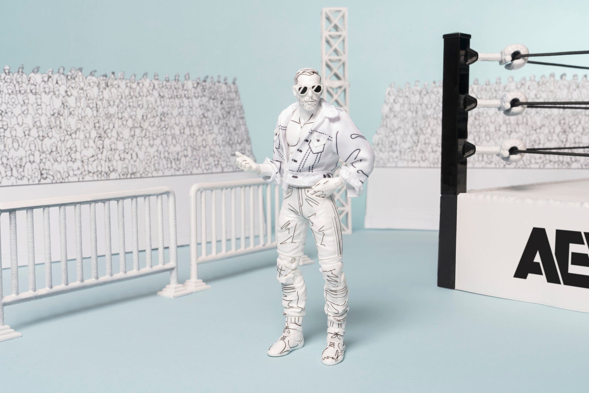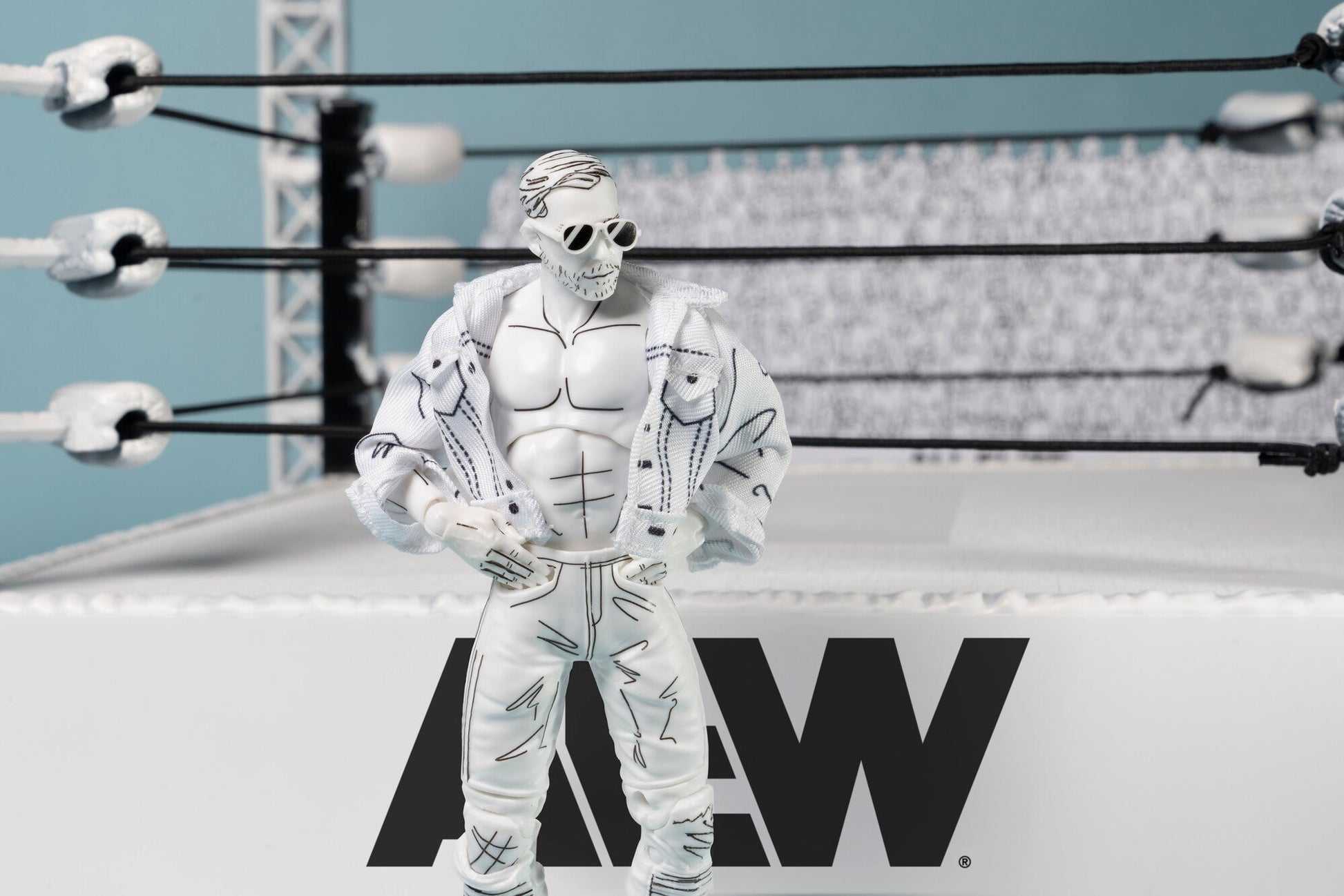 Learn the art of the squeeze with the Orange Cassidy Online Exclusive! Featuring 25 points of articulation to land the Beach Break, this deluxe 6-inch action figure is designed with unique black and white line art deco to look hand drawn. Cassidy also enters the ring with a soft entrance jacket, and comes equipped with an elbow pad, three alternate hands and the AEW International Championship title belt. Everything comes encased in premium window box packaging that’s made for collector showcase and display. AEW Online Exclusive figures are highly posable and use advanced scanning technology to capture realistic details from each wrestler. Available now at Jazwares Vault. Officially licensed AEW product by Jazwares. Ages 8+