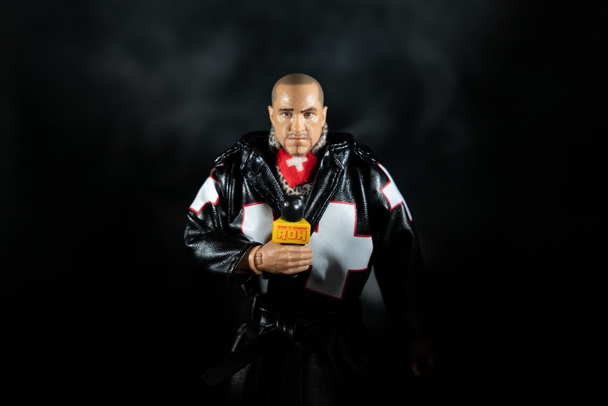 Uppercut the competition with Claudio Castagnoli Vault Exclusive. Featuring 25 points of articulation to land the Big Swing, this deluxe 6-inch action figure is inspired by Claudio's match gear from Ring of Honor 2008. Claudio enters the ring with an entrance robe, scarf, and ROH microphone, and comes equipped with an alternate and two alternate hands. ROH Vault Exclusive figures are highly posable and use advanced scanning technology to capture realistic details from each wrestler. Officially licensed ROH product by Jazwares. Ages 8+
