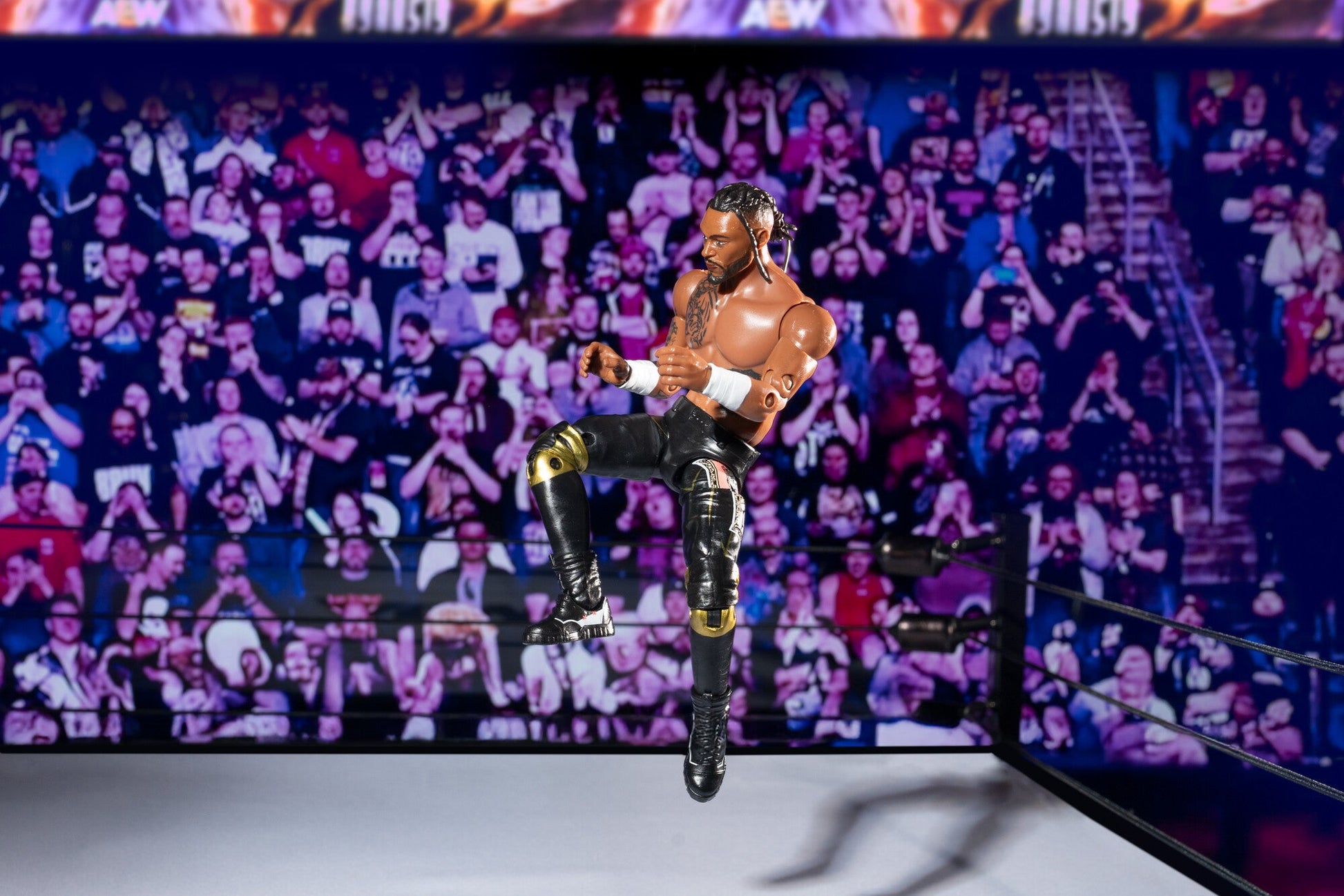 Swerve in a new era with the AEW Swerve Strickland (Vault Edition). This 6-inch figure of Swerve features 25 points of articulation and is inspired by his historic defeat of Samoa Joe at AEW Dynasty in April of 2024. He enters the ring with two pieces of soft entrance gear (top and robe) plus four swappable hands (fists and claw gloves). He also comes equipped with an alternate mask head to recreate every moment from the match. The entire set is encased in premium packaging that comes with a special slipcase cover. AEW Vault figures are highly posable and use advanced scanning technology to capture realistic details from each wrestler. AEW Swerve Strickland (Vault Edition) is only available at Jazwares Vault. Officially licensed AEW product by Jazwares. Ages 8+