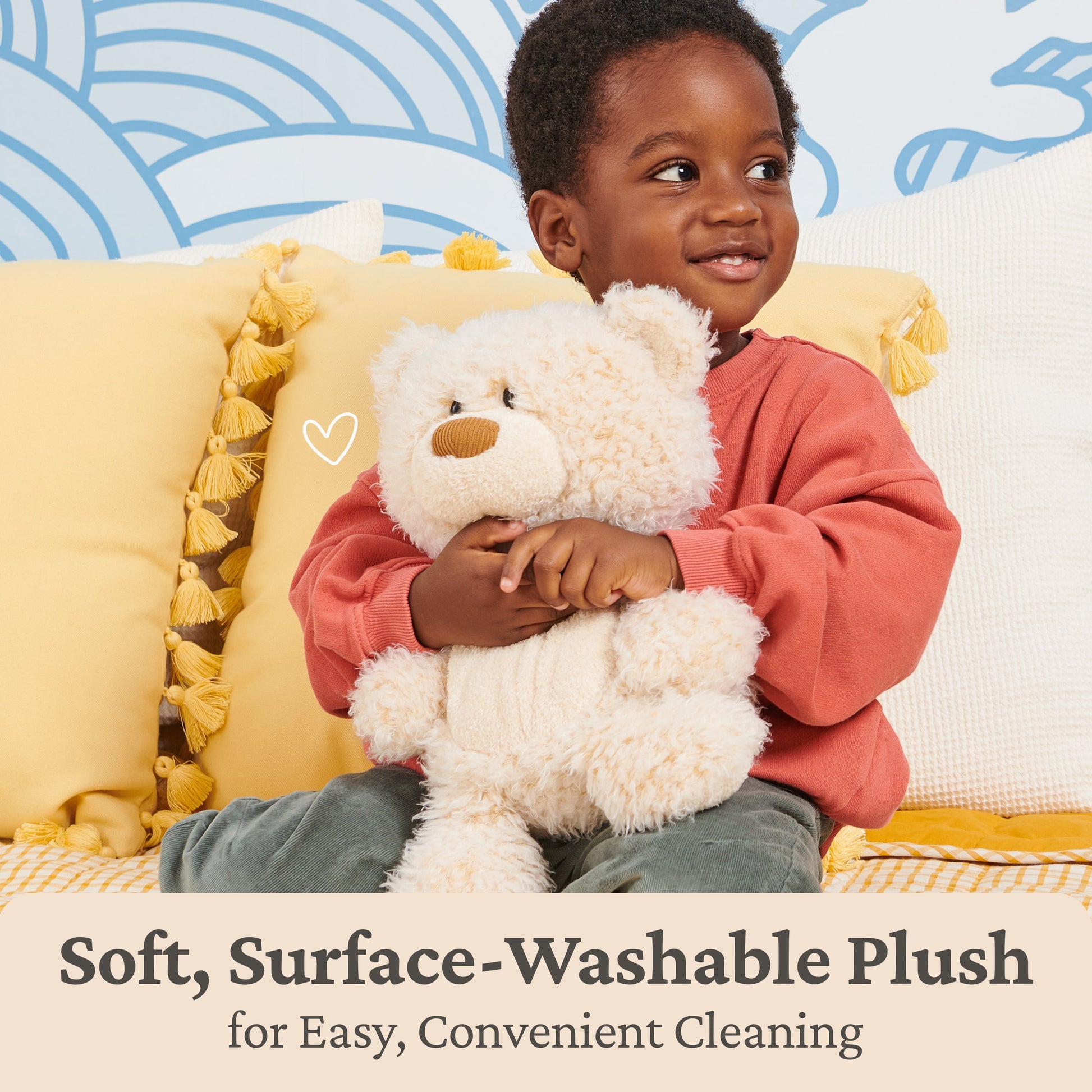 Like all of our teddy bears, Bubbles is surface-washable and appropriate for ages 1 and up. Do not machine-wash or use harsh chemical cleaners.