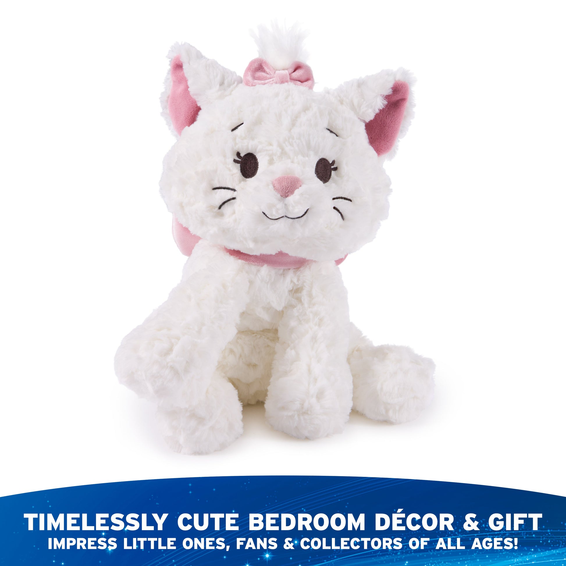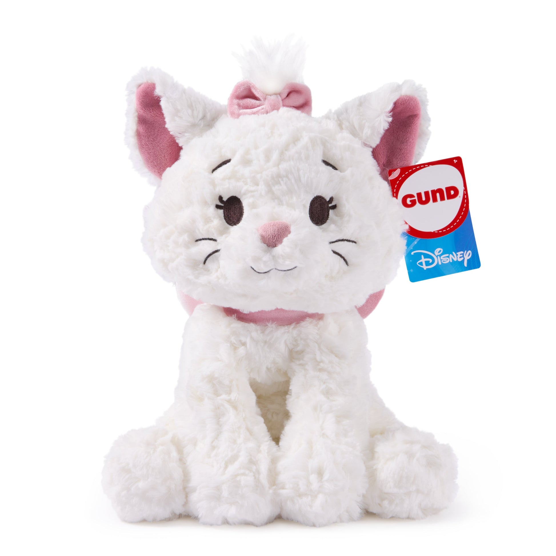 Bring the poise to playtime with Disney’s Marie! The curious, sarcastic, and sassy star of Disney’s The Aristocats has been crafted in our signature Cozys Collection style, bringing the magic of the classic Disney film to one of our most-loved plush lines. Cozys are cuddly companions made from soft, textured fabrics that feel as familiar as hugging an old friend! At 10 inches long, this irresistibly cute Marie kitten plush features authentic character details from The Aristocats, including her bright white fur, pink ears, and the dainty, baby-pink icy velour bows on her neck and head. She also has a long and floppy, extra-fluffy tail and another silky tuft of plush on top of her head. Like all Cozys animals, this cat stuffed animal has soft swirls of high-pile plush and floppy limbs built for hugging. Marie was made for snuggle sessions! Appropriate for ages 1 and up. Ships in a protective poly bag. Do not machine-wash.