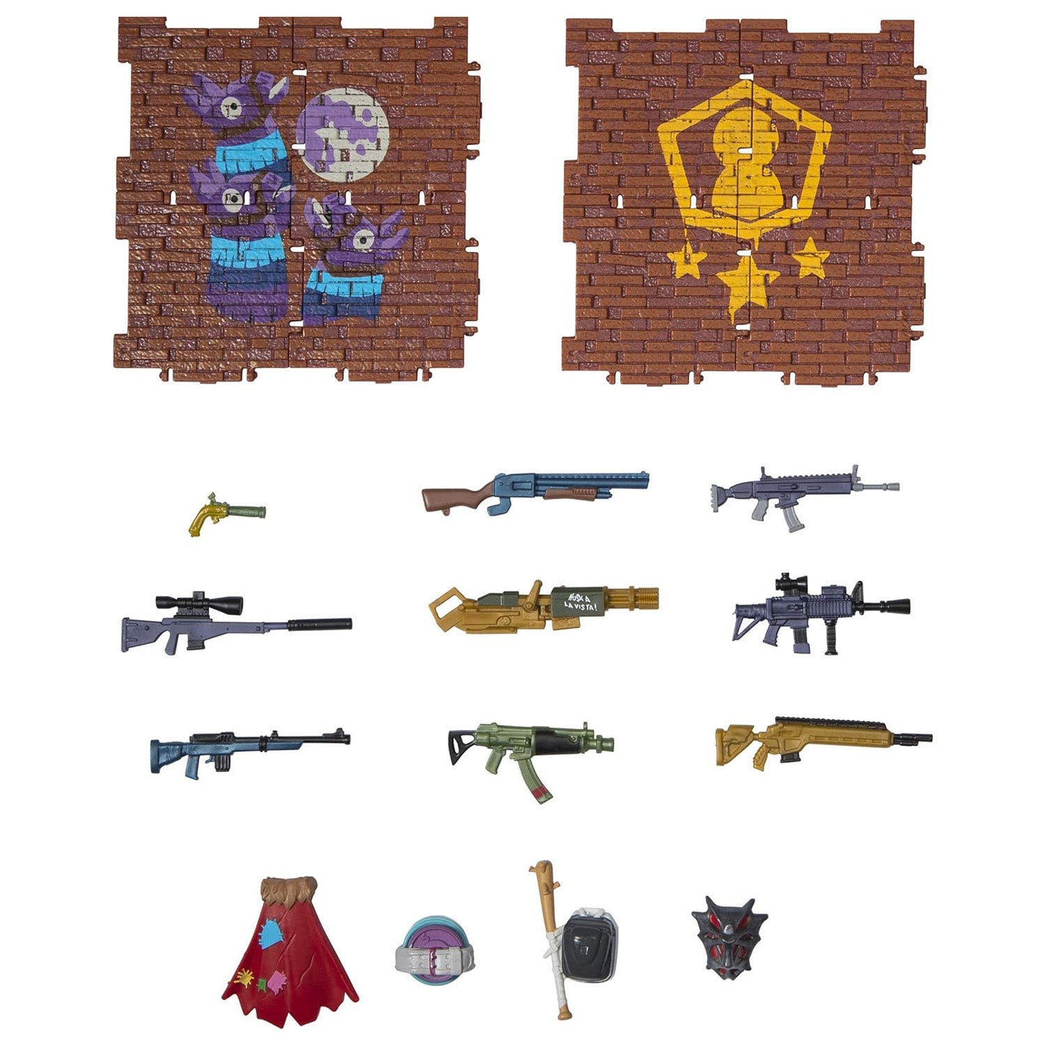 Measures 14 inches tall and includes 23 pieces—9 weapons, 4 Back Bling, 8 exclusive building materials and a llama float that fits many 4” Fortnite action figures! Plus, it's pre-filled with a 4-inch Giddy-Up figure. Giddy-Up features 25+ points of articulation and highly detailed decoration inspired by one of the most popular outfits from Epic Games' Fortnite.