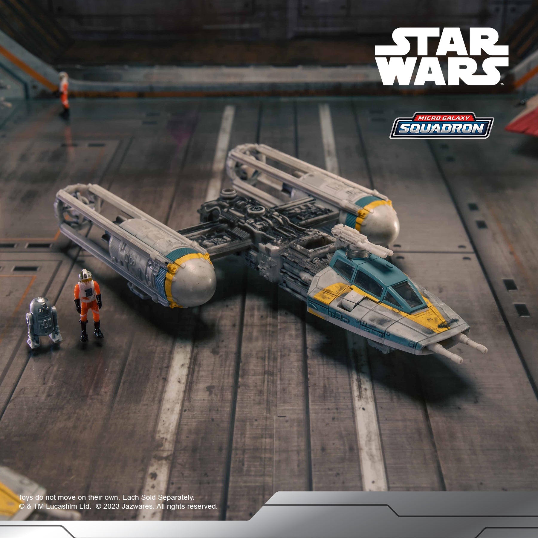 Command Gold Squadron with the STAR WARS Micro Galaxy Squadron Gold Leader's Y-Wing. Featuring incredible details and authentic scaling, this 5-inch vehicle is based on the BTL light bombers deployed during the Battle of YAVIN. Race through the Death Star Trench with proton torpedoes, a rotating ion turret, an opening cockpit, retractable landing gear, and a working droid socket. Vehicle also includes articulated 1-inch Jon Vander and R2-BHD micro figure accessories, compatible with any STAR WARS Micro Galaxy Squadron craft. Collect Gold Leader's Y-Wing and lead the assault on the DEATH STAR. Officially licensed STAR WARS product from Jazwares. Ages 8+