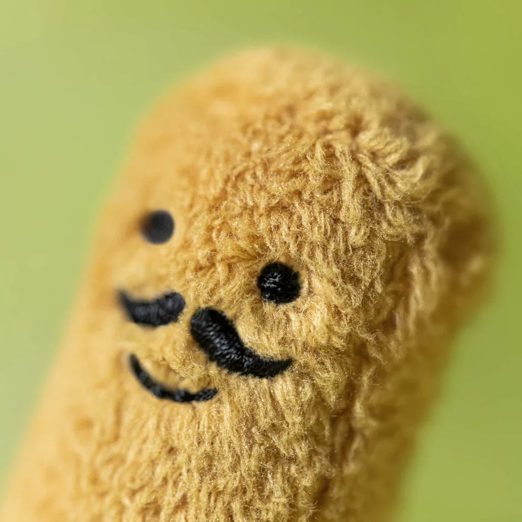Start every day right with Amuseables Eggetha Egg & Lance Soldier. A textured soft-boiled egg sits in a blue and white striped cotton egg cup with fine cord arms and a stitched smile. Eggetha Egg holds on to perfectly toasted Lance Soldier, in golden brown textured fur with embroidered facial features and mustache.