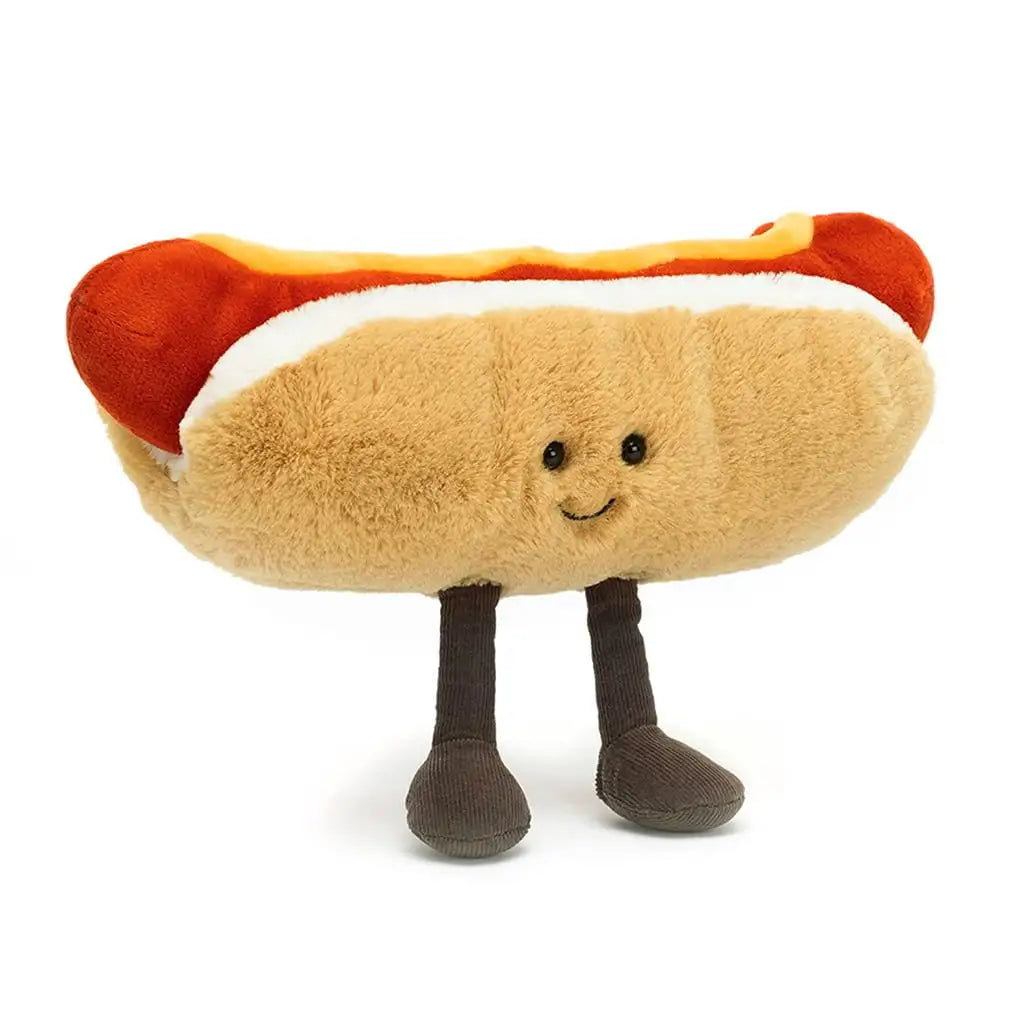 For summer fun, meet this silly sausage! Amuseables Hot Dog loves a trip to the fairground, trotting along on cordy feet. With a fluffy bread bun in beige and white fur and a gingery frankfurter covered in mustard, our smiley snack can't wait to try all the rides!