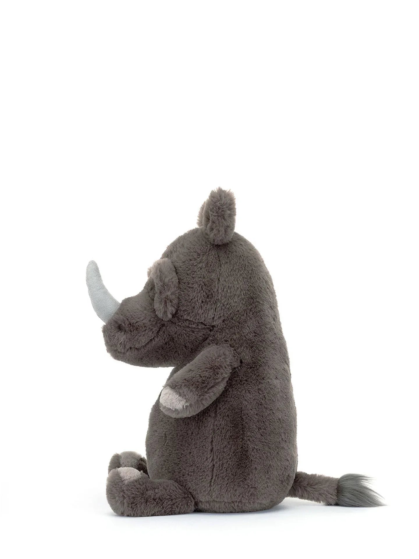 Roderick Rhinoceros is a sturdy guy and a fiercely loyal friend. This rhino is rocking a rumpled brow, petal ears and a big suedette horn. With scrumptious grey fur, a huggable tummy and a fuzzy tail with silky plume, he's stomping about in style! Tons of texture for curious hooves.