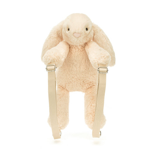 Wherever you bounce, take everything you need in the Smudge Rabbit Backpack. Soothing and soft in oatmeal fur, with a snowy bobtail and long lop-ears, this fully-lined bag has a silver zipper and Jellycat tag. With adjustable straps in strong beige webbing, this bunny's a travel essential.