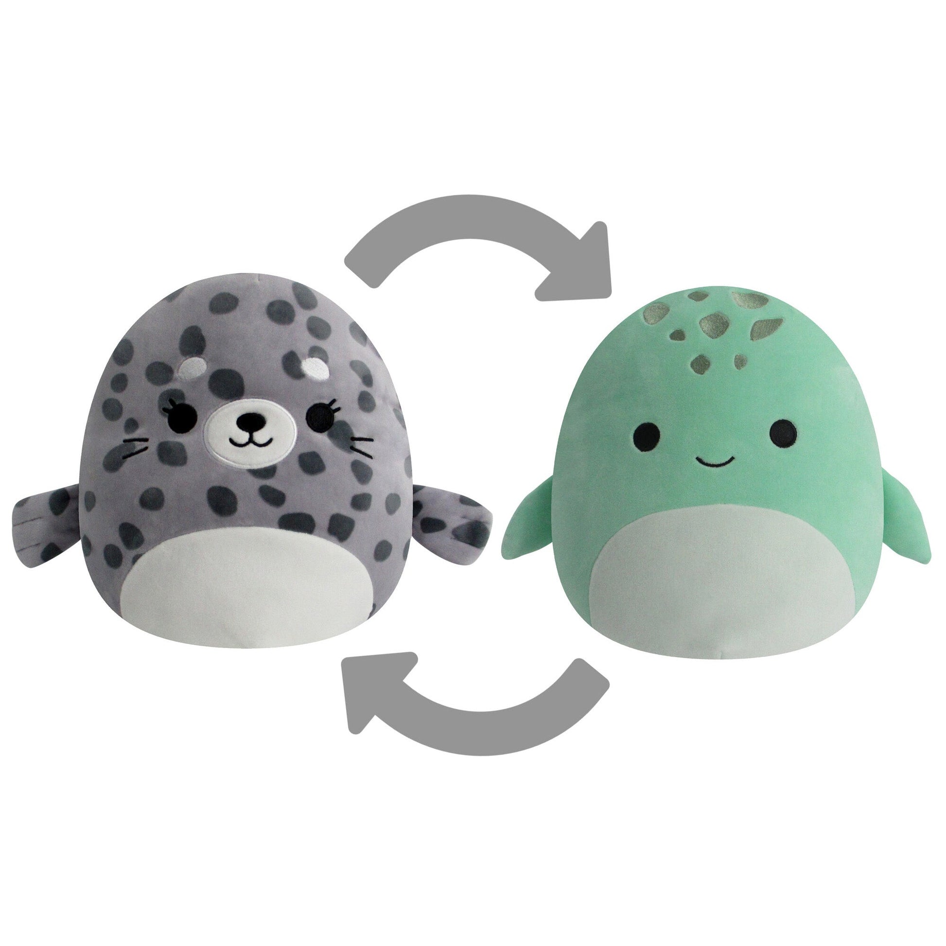 Add this adorable grey spotted seal and teal turtle FlipAMallows plush to your Squishmallow Squad! The soft FlipAMallows plush is perfect to snuggle with while relaxing at home, watching a movie, or taking a long car or plane ride! This authentic Squishmallows plush is easy to clean: hand wash, then air dry. These lovable and squeezable Squishmallows are the softest and cutest plush toys around! Only by Original Squishmallows. Join the Squad!