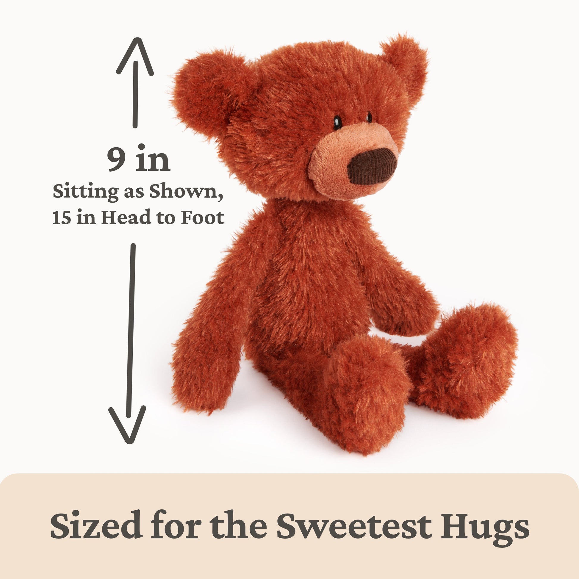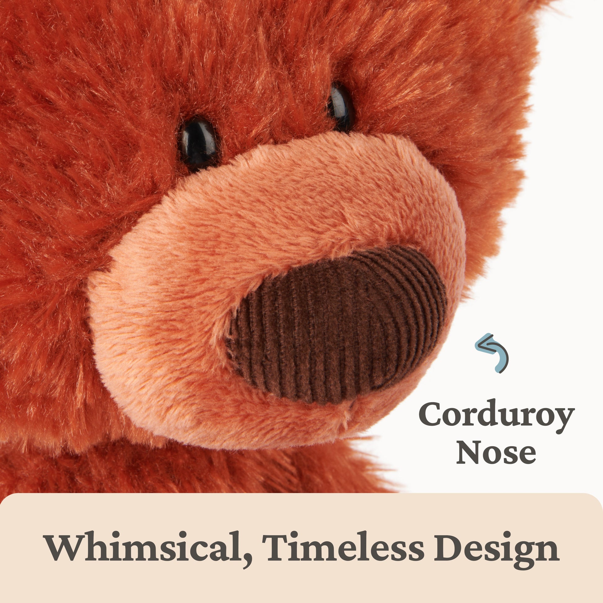 Pumpkin Pie has been waiting all year for the brisk chill of the autumn air – and now he can’t wait to join playtime with you! This sweet plush bear thoughtfully chooses the coziest sweaters to layer, the tastiest cider to sip, and makes the most of every short fall day. As our newest addition to the Toothpick collection, this festive 15” spice-colored teddy bear has deep burnt orange plush and the same chocolate-brown corduroy nose and soft plush muzzle as the original Toothpick. He’s the perfect partner for sharing those irresistible pumpkin spice lattes!