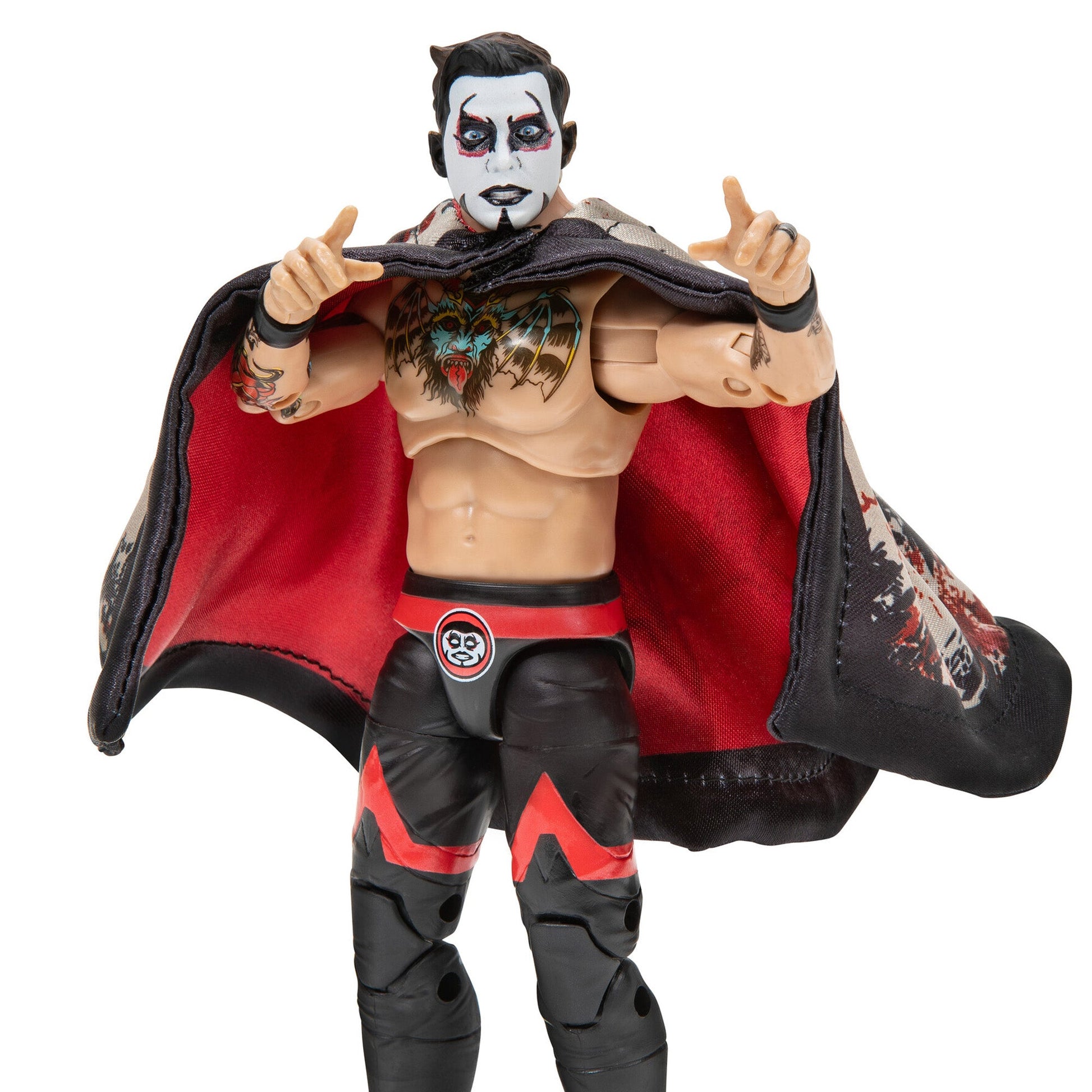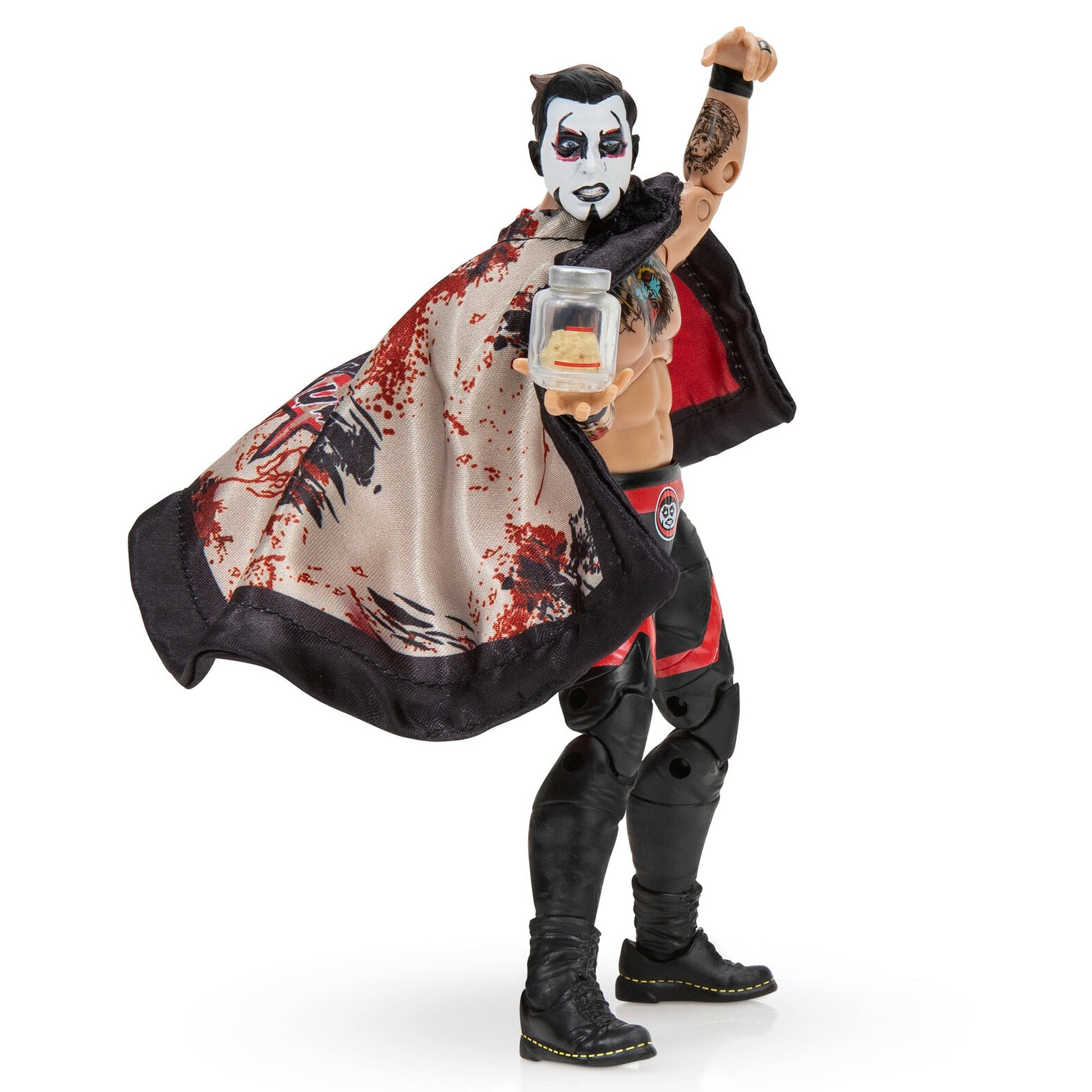 Play very nice and very evil with Danhausen Vault Exclusive. Featuring 25 points of articulation to land the Very Knee-vil, this deluxe 6-inch action figure is inspired by Danhausen’s match gear from Ring of Honor Final Battle 2020. Danhausen enters the ring with a bendable entrance cape and comes equipped with two alternate heads, two alternate hands, and a jar of teeth. AEW Vault Exclusive figures are highly posable and use advanced scanning technology to capture realistic details from each wrestler. Officially licensed AEW product by Jazwares. Ages 8+