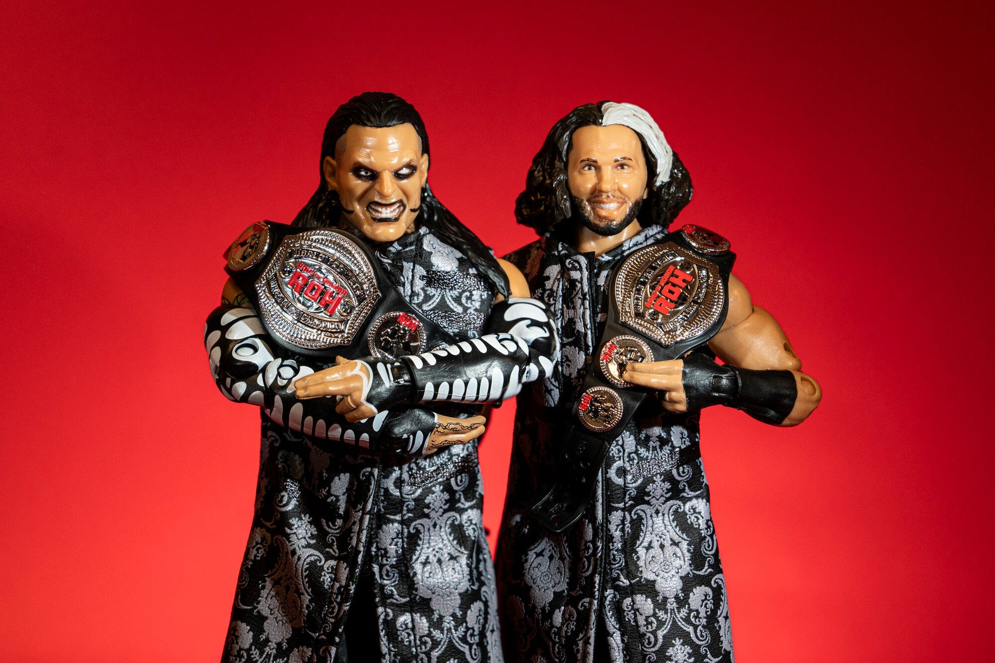 Rule the Ring of Honor with the ROH Hardy Boyz 2-Pack. These 6-inch figures of Matt and Jeff Hardy each feature 25 points of articulation and are inspired by their Tag Title reign in Ring of Honor. Both enter the ring with soft entrance jackets and come equipped with ROG Tag Team title belts. ROH Vault figures are highly posable and use advanced scanning technology to capture realistic details from each wrestler. The ROH Hardy Boyz 2-Pack is only available at Jazwares Vault. Officially licensed ROH product by Jazwares. Ages 8+