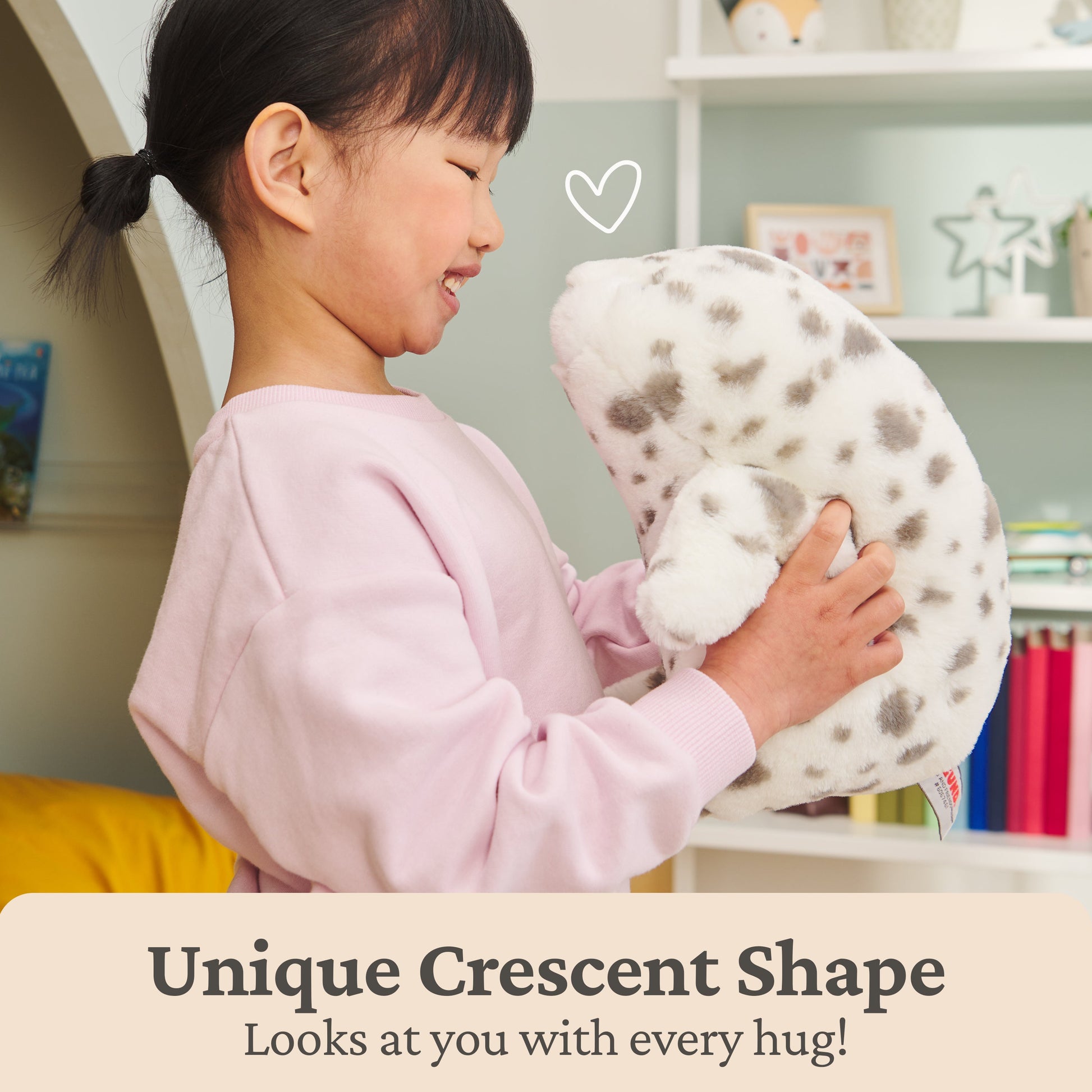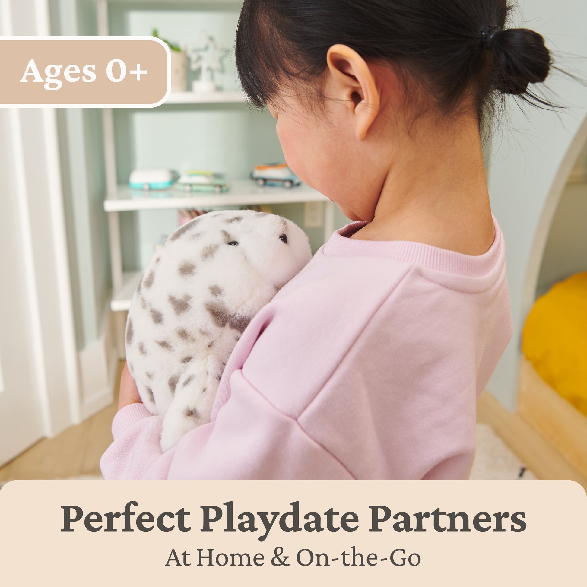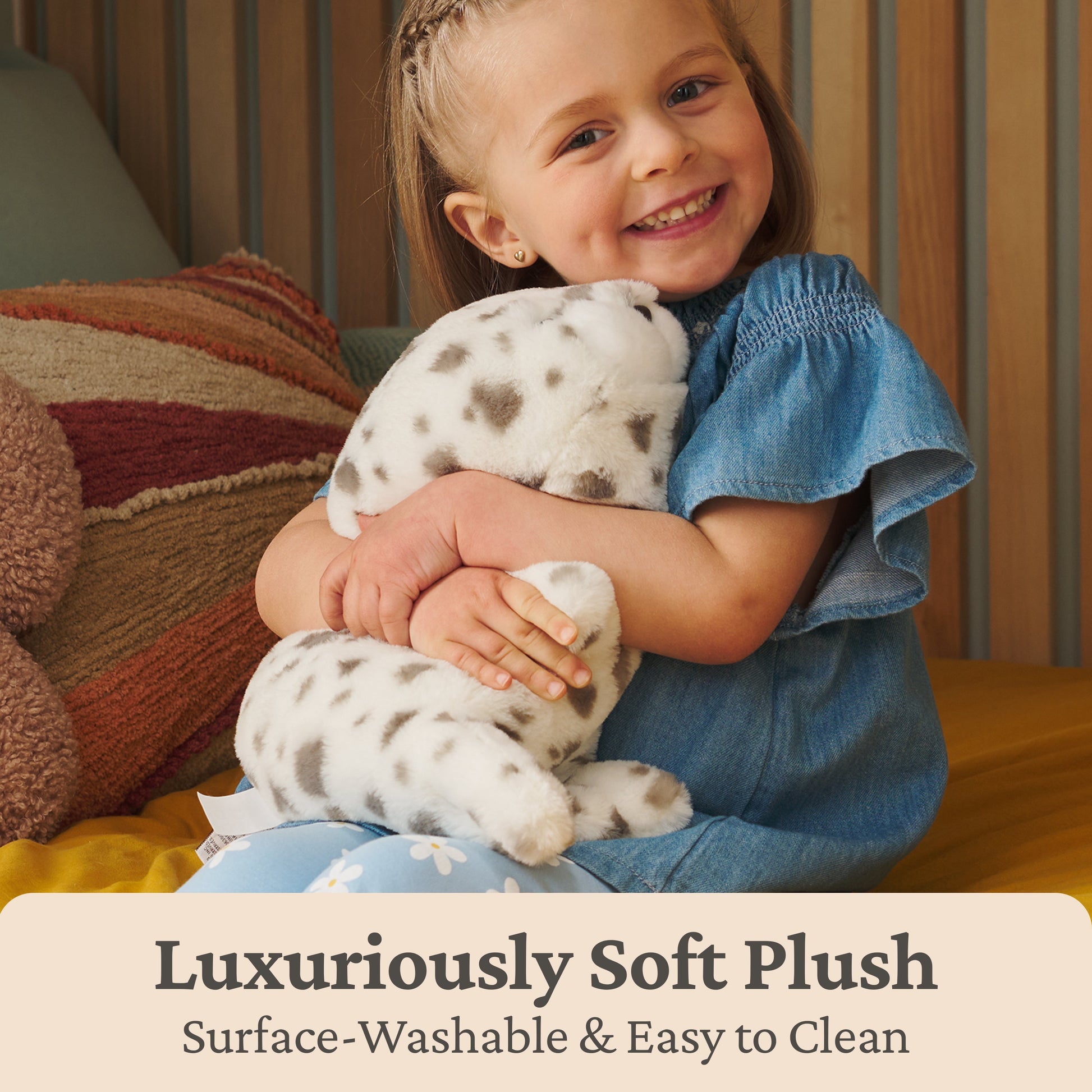 Snuffles® is joined by new soft, snuggly animal friends… each with big smiles and huggable moon shapes of their own! Sitting upright at 10”, Nuri is a beautiful, super-soft leopard seal with a classic white-and-gray spotted design and realistic details. This timeless seal also features a unique curved design that lets her look in your eyes with every hug, making each squeeze even more special. Nuri is surface-washable and appropriate for ages 1 and up. Do not machine-wash or use harsh chemical cleaners. Ships in a protective poly bag.