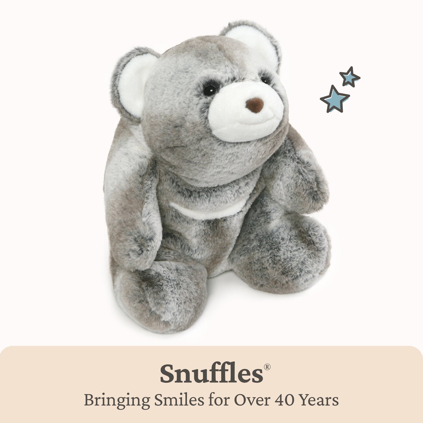 Snuffles® has been spreading joy as one of our most beloved teddy bears for over 40 years! This 13-inch version of Snuffles comes in a unique two-tone, ultra-plush dark grey and brown plush that’s softer than ever and feels like snuggling a cloud! Snuffles’ unique crescent design lets him look into your eyes with every hug. Snuffles is surface-washable for easy cleaning and appropriate for ages 1 and up for snuggles.