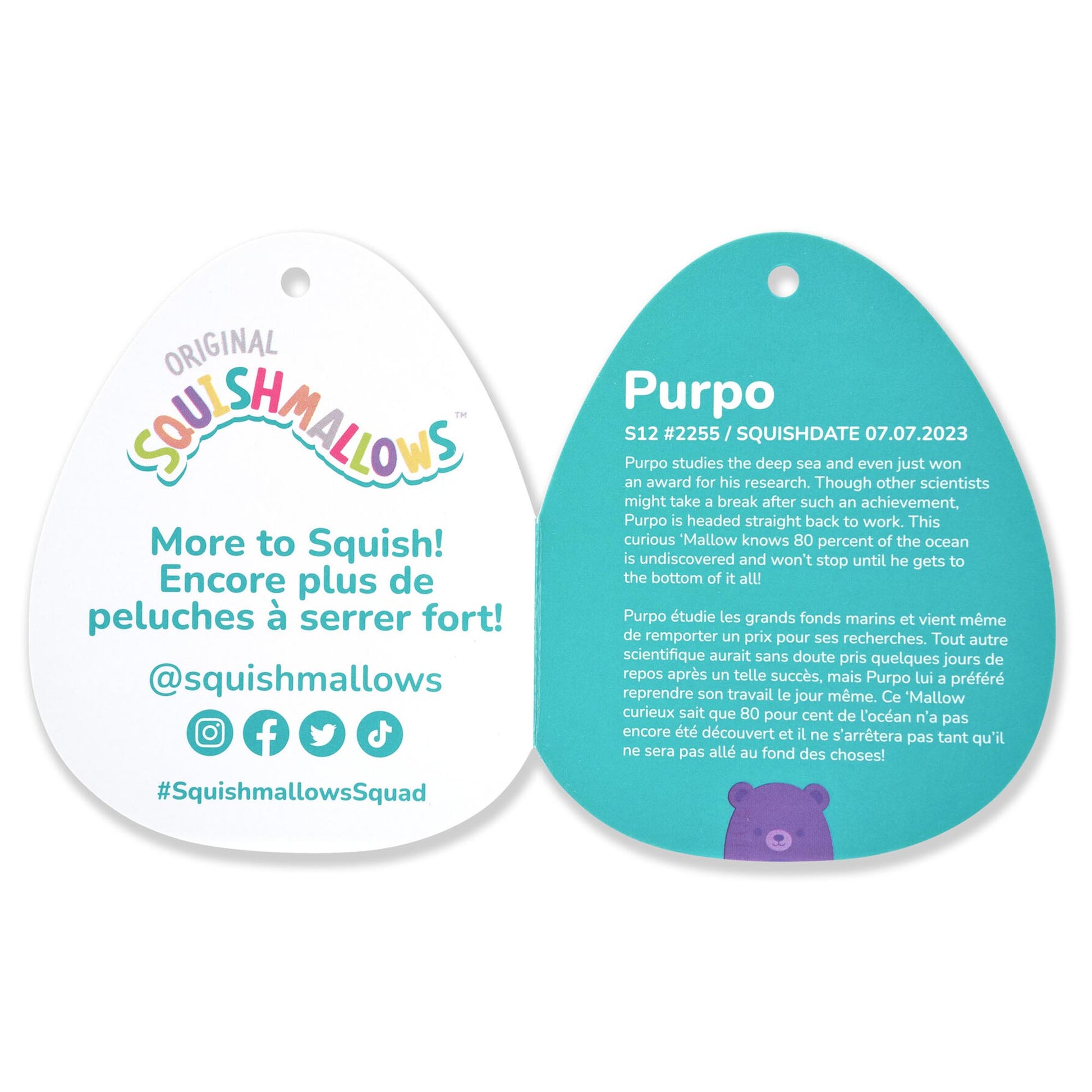 Meet your new bestie, Purpo! Each Squishmallow plush comes with its own unique name and bio and makes the perfect cuddly companion for scary movies, long flights, or comfy nights in. Purpo is only by Original Squishmallows. Join the Squad today!