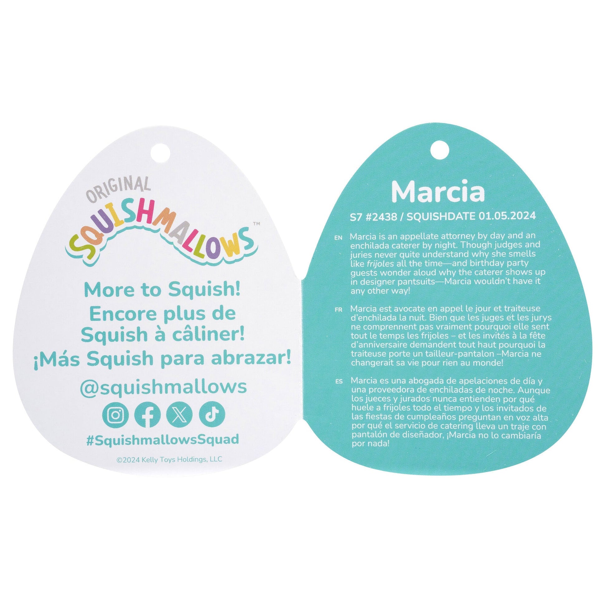 Meet your new bestie, Marcia! Each Squishmallow plush comes with its own unique name and bio and makes the perfect cuddly companion for scary movies, long flights, or comfy nights in. Marcia is only by Original Squishmallows. Join the Squad today!