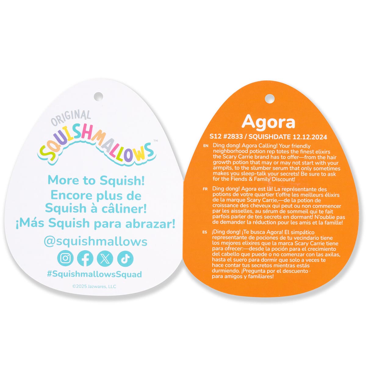Meet your new bestie, Agora! Each Squishmallow plush comes with its own unique name and bio and makes the perfect cuddly companion for long flights out or comfy nights in. Agora is only by Original Squishmallows. Join the Squad today!