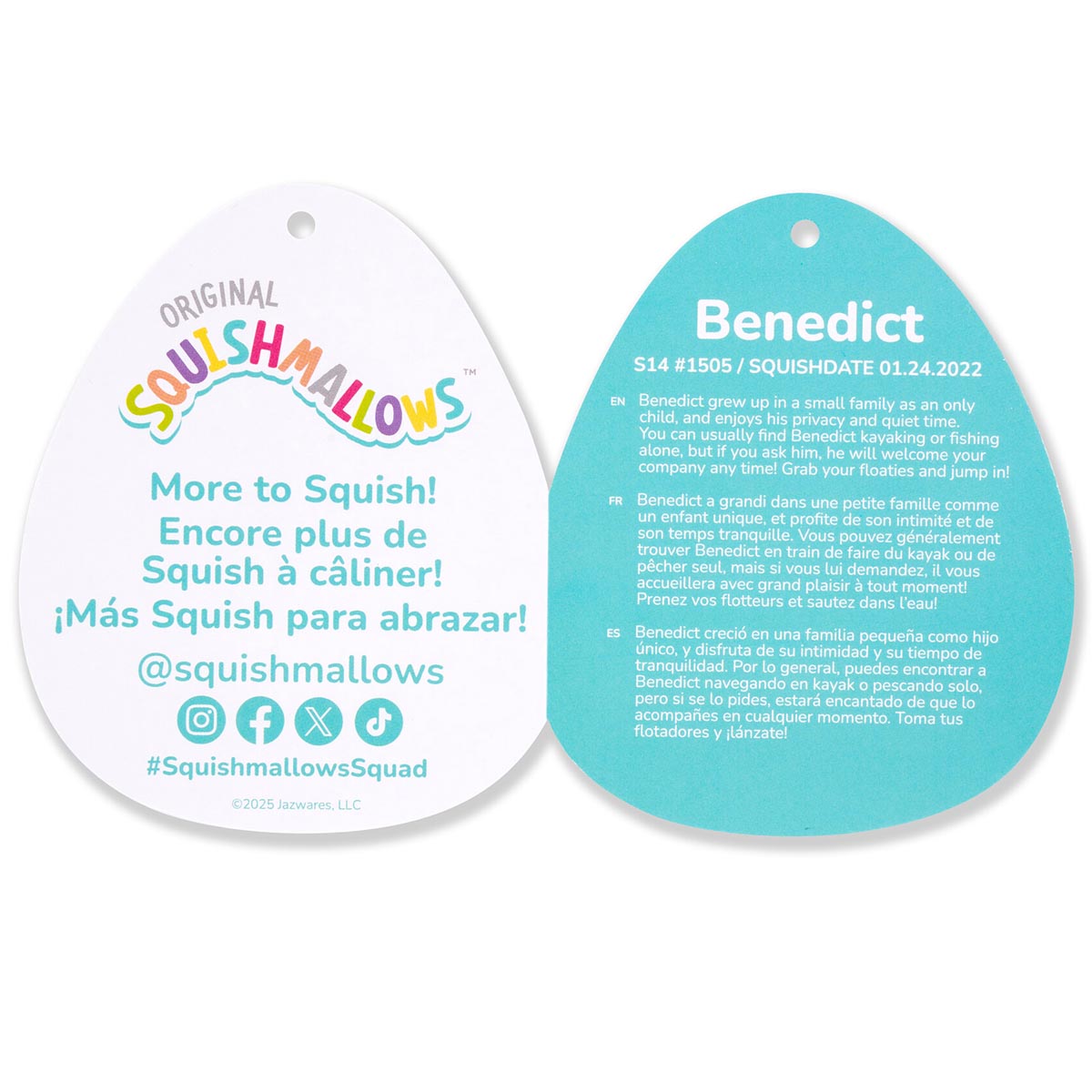 Meet your new bestie, Benedict! Each Squishmallow plush comes with its own unique name and bio and makes the perfect cuddly companion for long flights out or comfy nights in. Benedict is only by Original Squishmallows. Join the Squad today!