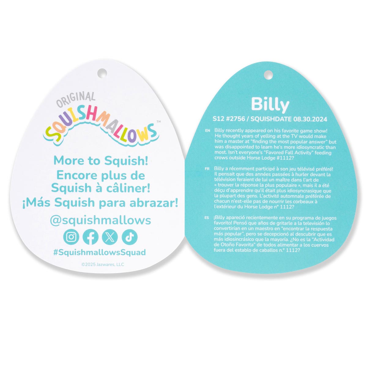 Meet your new bestie, Billy! Each Squishmallow plush comes with its own unique name and bio and makes the perfect cuddly companion for long flights out or comfy nights in. Billy is only by Original Squishmallows. Join the Squad today!