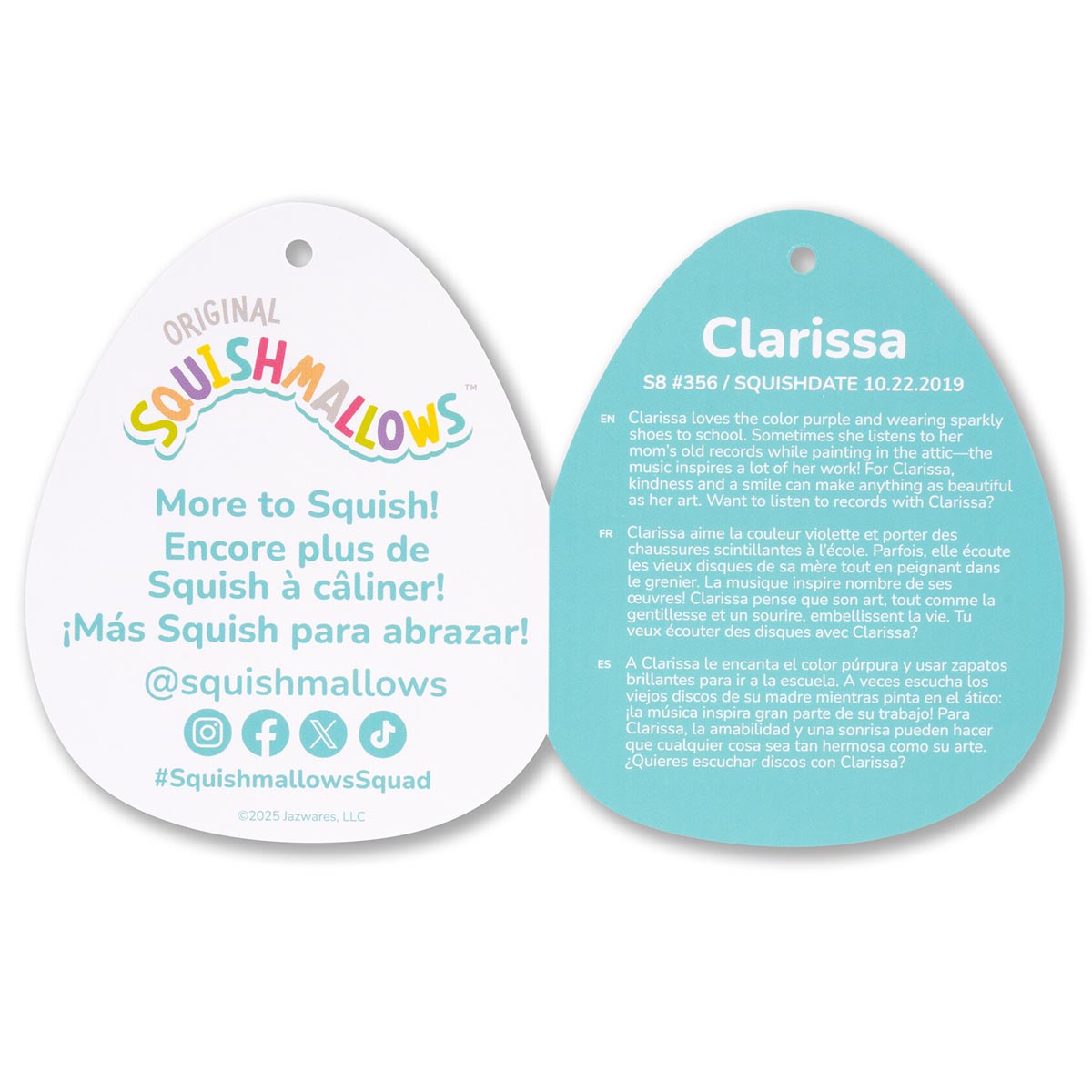 Meet your new bestie, Clarissa! Each Squishmallows plush comes with its own unique name and bio and makes the perfect cuddly companion for long flights out or comfy nights in. Clarissa is only by Original Squishmallows. Join the Squad today!
