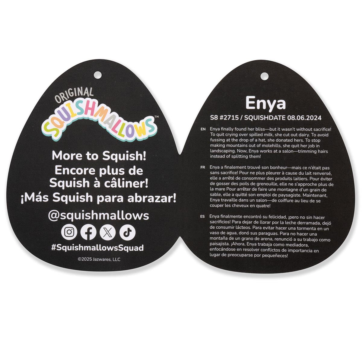 Squishmallows are made with ultrasoft, high-quality materials and make the perfect cuddly companion for long flights out or comfy nights in! Enya is only by Original Squishmallows and available exclusively online. Join the Squad today!