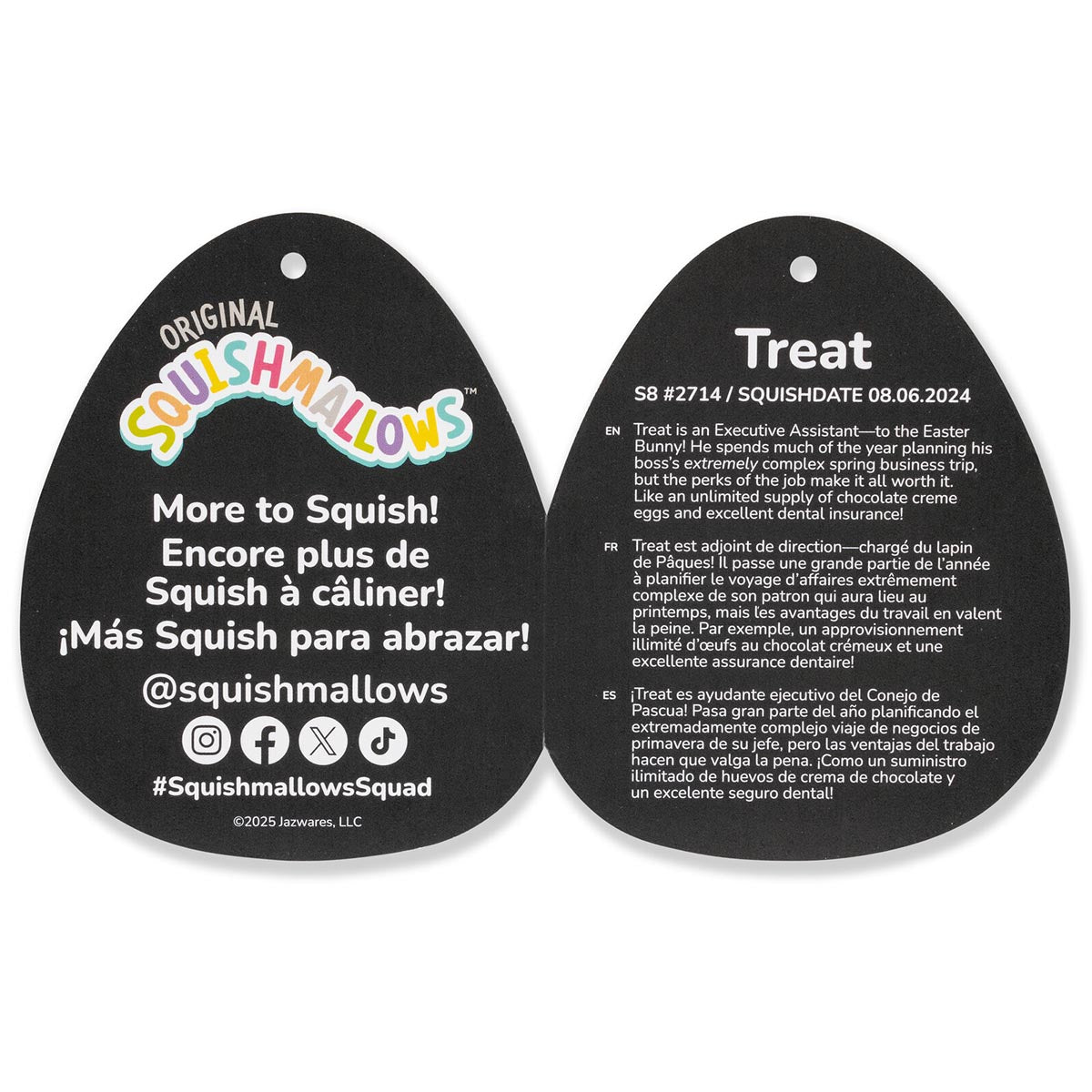 Squishmallows are made with ultrasoft, high-quality materials and make the perfect cuddly companion for long flights out or comfy nights in! Treat is only by Original Squishmallows and available exclusively online. Join the Squad today! Easter.