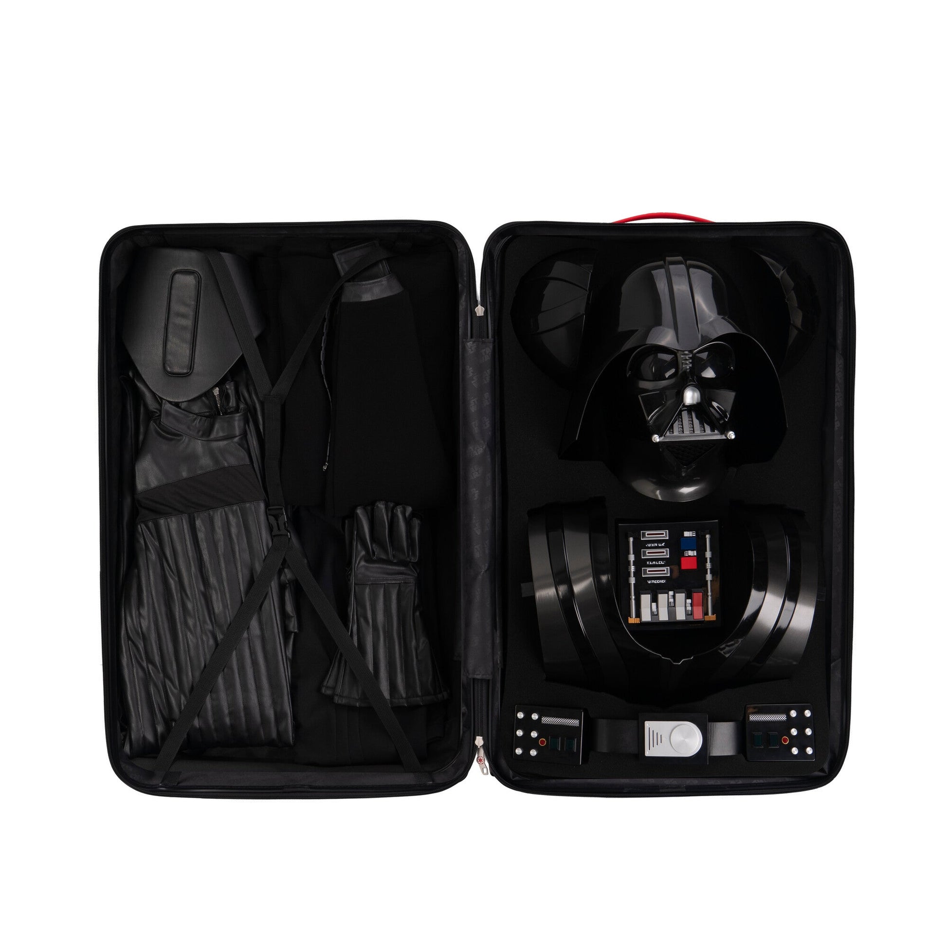 Champion the Dark Side with the STAR WARS™ Darth Vader Official PRIMALUX™ Costume. Based on Vader’s iconic armor from STAR WARS: A NEW HOPE™, this complete costume features a suit and tunic, shoulder, waist, and shin armor, cape with chain, gloves, belt, chest box, and helmet. The belt and chest box not only light up but project Vader’s infamous breathing sounds. The two-piece helmet features adjustable lining and a lock mechanism to keep it in place. Every inch is designed with high quality plastics and woven with numerous fabrics to bring Vader’s armor off the screen and onto your body. Finally, it comes packaged in a collectible hard storage case emblazoned with Vader’s helmet. Collect the STAR WARS™ Darth Vader Official PRIMALUX™ Costume and fulfill your destiny. Only available at Jazwares Vault. Officially licensed STAR WARS product from Jazwares.