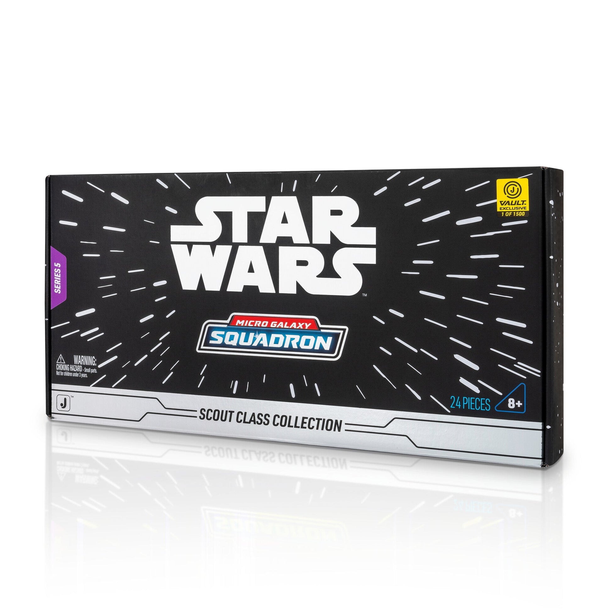 Build your fleet with STAR WARS™ Micro Galaxy Squadron Scout Class Series 5 Box Set. This special edition collection is available at Jazwares Vault and features all five Series 5 2.5-inch Scout Class packs, including both Rare and Chase vehicles. All vehicles are incredibly detailed, authentically scaled, and come packed with a flight base. Pick up the Scout Class Series 5 Box set, now available at Jazwares Vault, and bring your collection full circle. Officially licensed STAR WARS product from Jazwares. Ages 8+